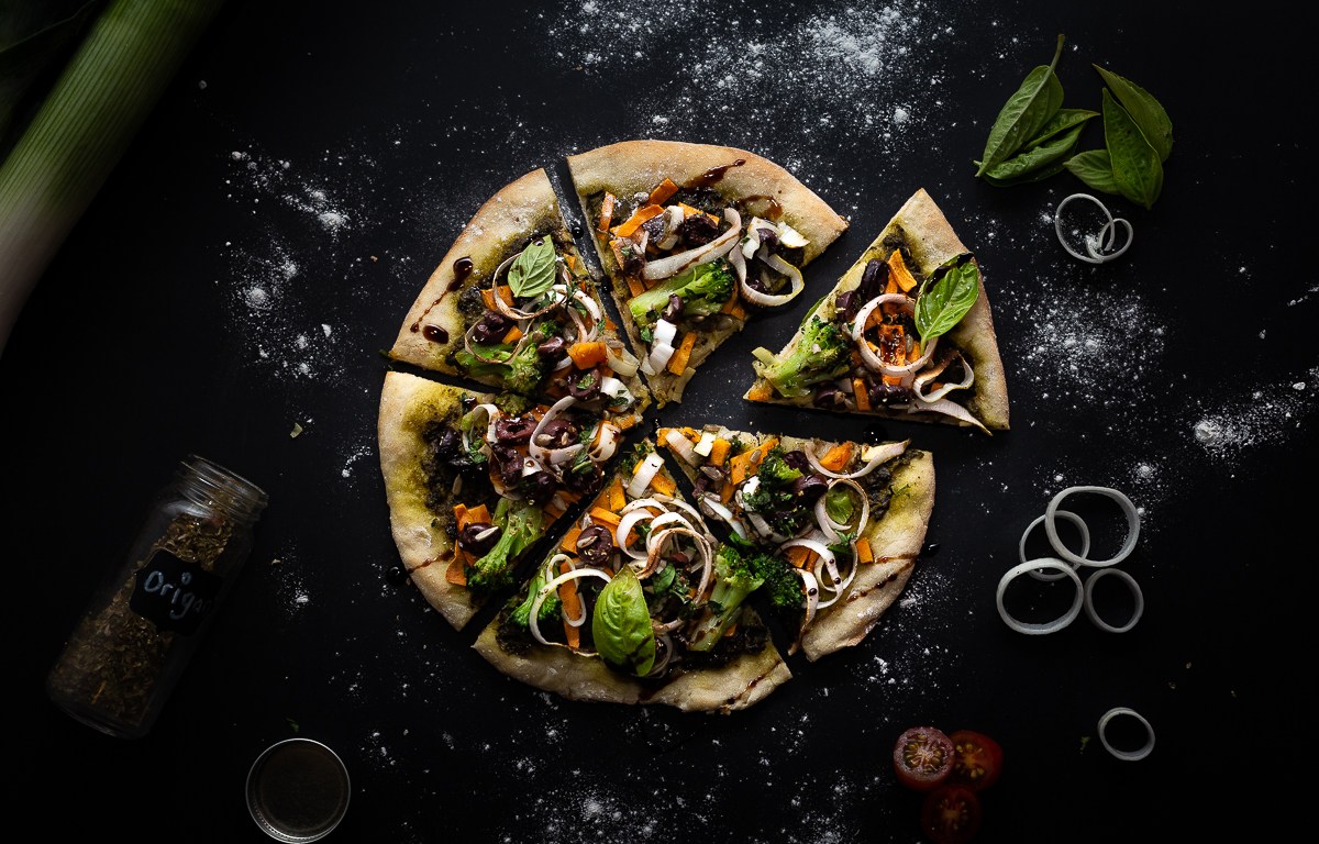 Une de mes belles-soeur. Une déesse aux fourneaux. Elle aurait dû écrire un blogue culinaire. Finalement, elle s’est exilée à NYC pour travailler au sein d’un énorme réseau social qui vous connaissez tous. Bref, elle m’a refilé sa recette de pizza végane et j’en profite pour prendre le mérite de la photographie.