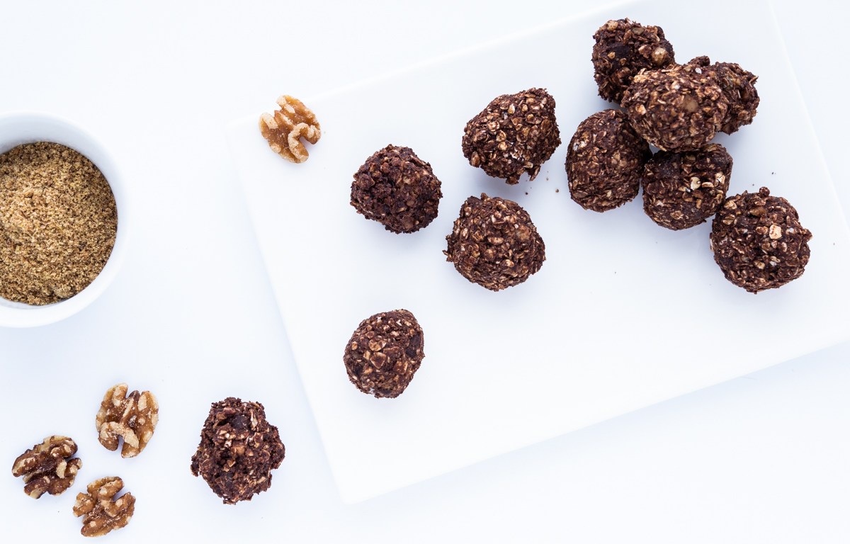 Quand mon gringalet me parle d’une recette qui l’interpelle, c’est sûr que je suis toute ouïe. N’importe quoi pour ajouter un peu de graisse autour de l’os. Ce fut le cas avec les boules d’énergie. Grignoter par-ci par-là des boules santé un peu n’importe quand dans la journée, ça lui parle. Alors, la recette finale, celle qui marche autant que le sirop Buckley (le bon goût en plus), c’est celle-ci.