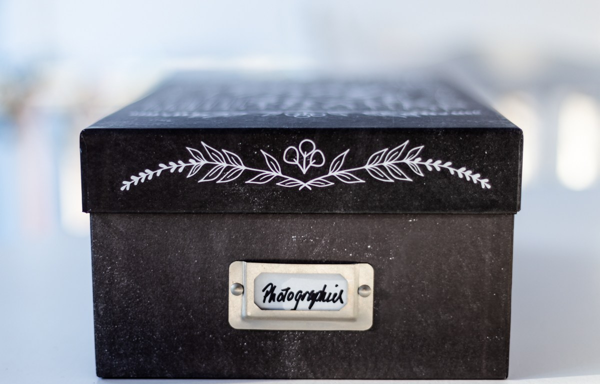 Pour moi personnellement, j’ai une boîte photo qui regroupe toutes les meilleures photos de ma vie. UNE boîte. Une sorte de coffre aux trésors. Quand j’ouvre cette boîte, la magie opère et je capote à les regarder une par une. Limiter mes photos de vie à une boîte me procure une grande joie à prendre le temps de les regarder. À en prendre soin. Vous ne me verrez jamais ouvrir mon disque dur avec autant de fun.