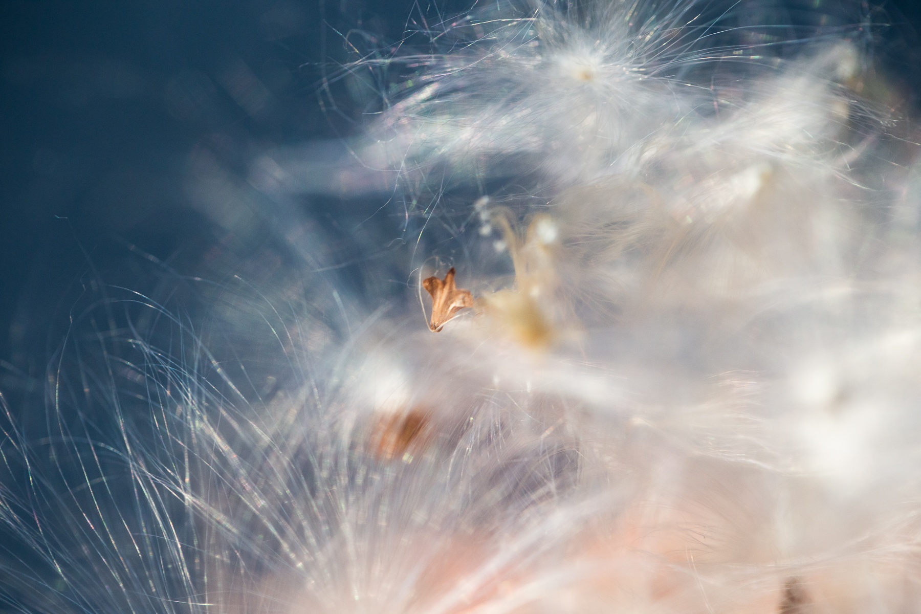 - des graines d’asclépiades fournies d’aigrettes soyeuses (le « moumou »). J’ai appris hier qu’elles étaient utilisées pour fabriquer des manteaux!