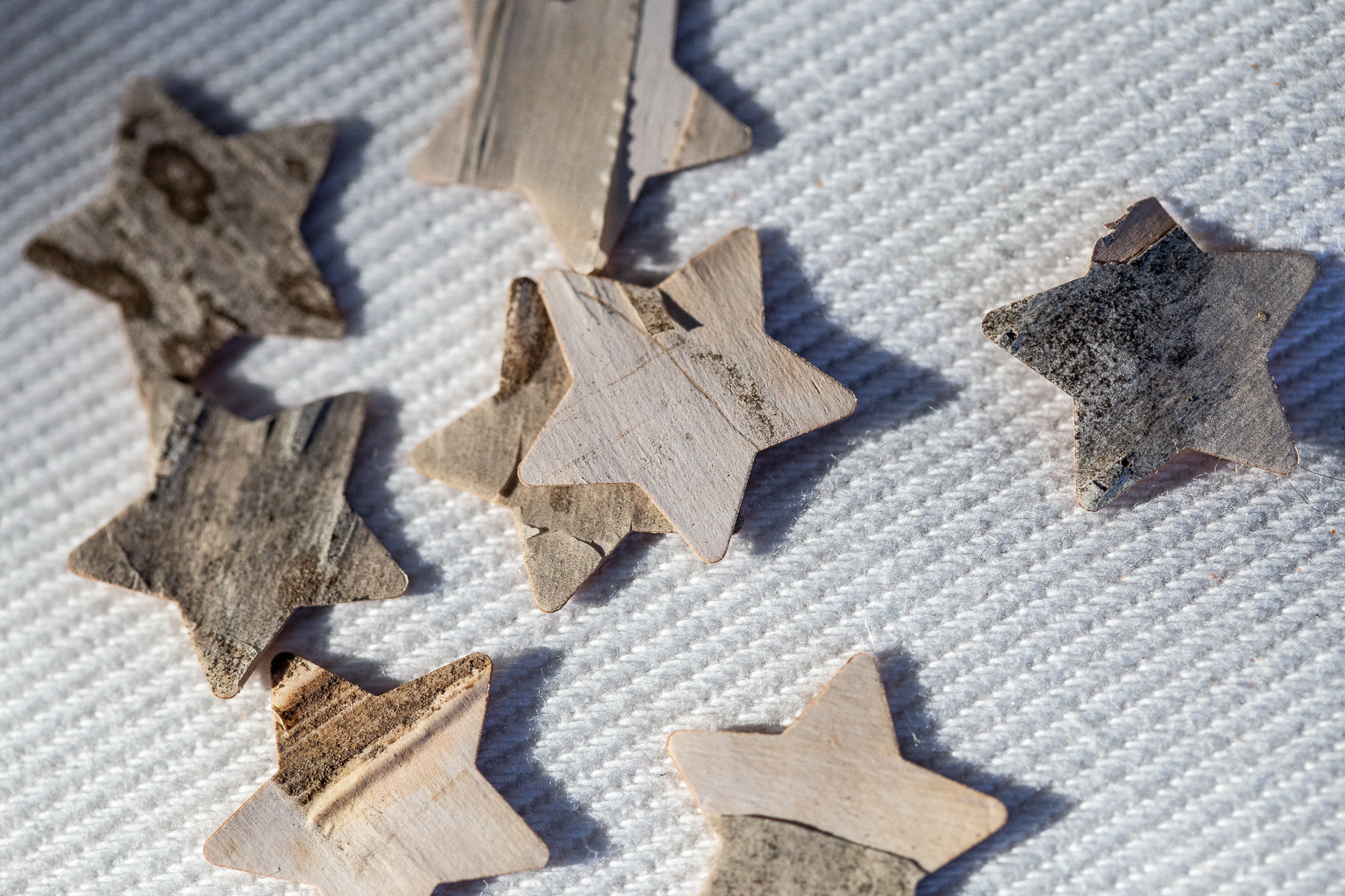 - des écorces d’arbres dans lesquels j’ai poinçonné des étoiles